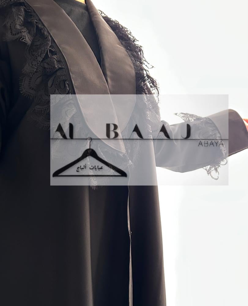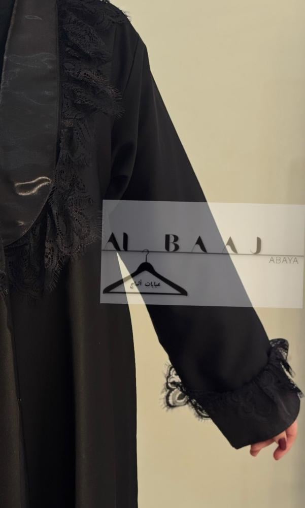 - أطراف العباية مزينة بدانتيل دقيق يضيف لمسة أنثوية راقية.